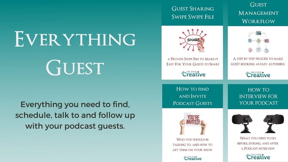 Do you have a podcast and struggle with all of the endless *work* involved with wrangling your guests? Nothing will make it go away (and honestly, the chance to network and build realtionships while guest wrangling is second-to-none) but it can be easier. The Everything Guest package will help! Crafted and refined over years of producing podcasts, we've put together 4 resources to make the guest-related parts of your podcast just a little bit easier.